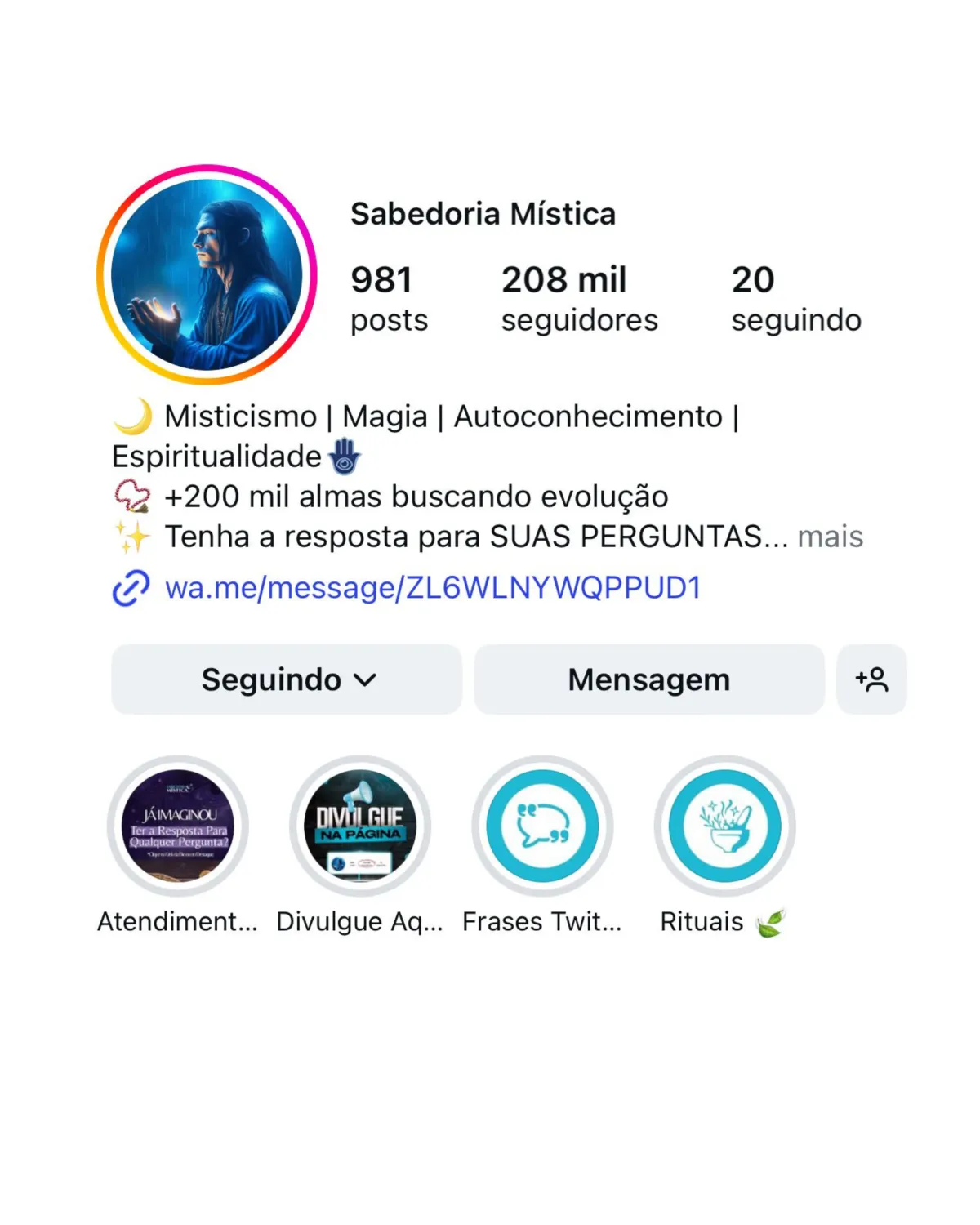 A Sabedoria Mística Brasil é hoje uma das maiores comunidades espirituais da internet, com mais de 208 mil seguidores que diariamente buscam clareza, força, energia e transformação.